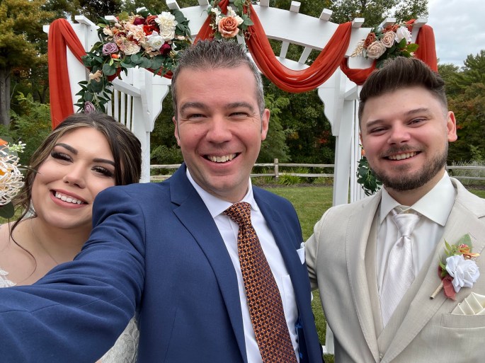 Brad recently officiated my husband’s and my wedding. He has been a long time family friend which made it even more special to have him be part of our day. Not only is having Brad as a friend wonderful, he is also so awesome to work with and did the most amazing job as an officiant! From start to finish, he was always so professional and had our best interests in mind. He listened to our story and incorporated it well into his speech. The process was easy with him and he always respected our wishes. I also received an incredible amount of compliments from guests about the ceremony and how they enjoyed hearing our story. Brad is an amazing officiant and I’m so grateful to have both worked with him and have him as a friend!
